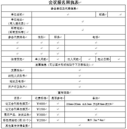 展示及宣传费:需要展示产品、洽谈业务的企业,将专门安排场所,每个单位收费3000元;论文集彩色插页4000元,黑白插页1500元。