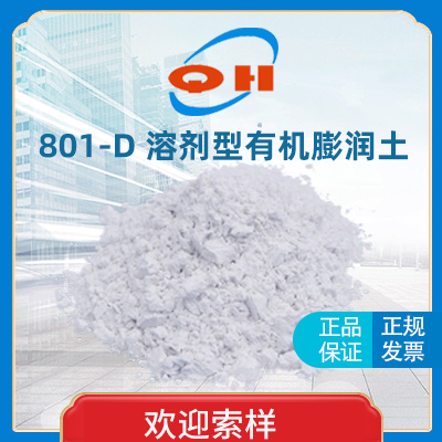 青虹新材料生产的801-D流变助剂是一种易分散自活化型有机铵改性蒙皂石有机粘土,是脂肪烃、酯类、酮类等低-中,部分高极性溶剂体系中的油漆、油墨的流变助剂,在二甲苯、二甲苯、酯类(如醋酸丁酯),二甲苯-酮类(如环己酮)等中-高极性溶剂体系中,可不加活化剂自活化分散,在200#溶剂油、白油(矿物酒精)等脂肪烃低极性溶体系中需加活化剂助分散(活化剂如95%乙醇、为有机土重量的30-40%)。产品类似于Bentone-SD1、Tixogel-MP100。
