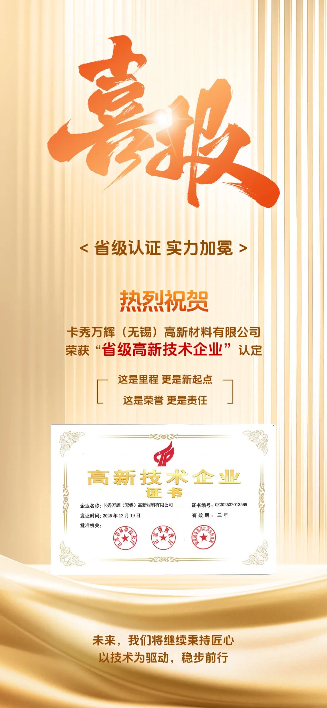 慧正资讯,近日,卡秀万辉控股有限公司凭借持续的创新能力与研发实力,成功被认定为省级高新技术企业。这一认定不仅是对企业在技术研发、成果转化及创新体系建设等方面成绩的权威认可,也标志着公司在高端定制化涂料领域的发展迈上了新的台阶。