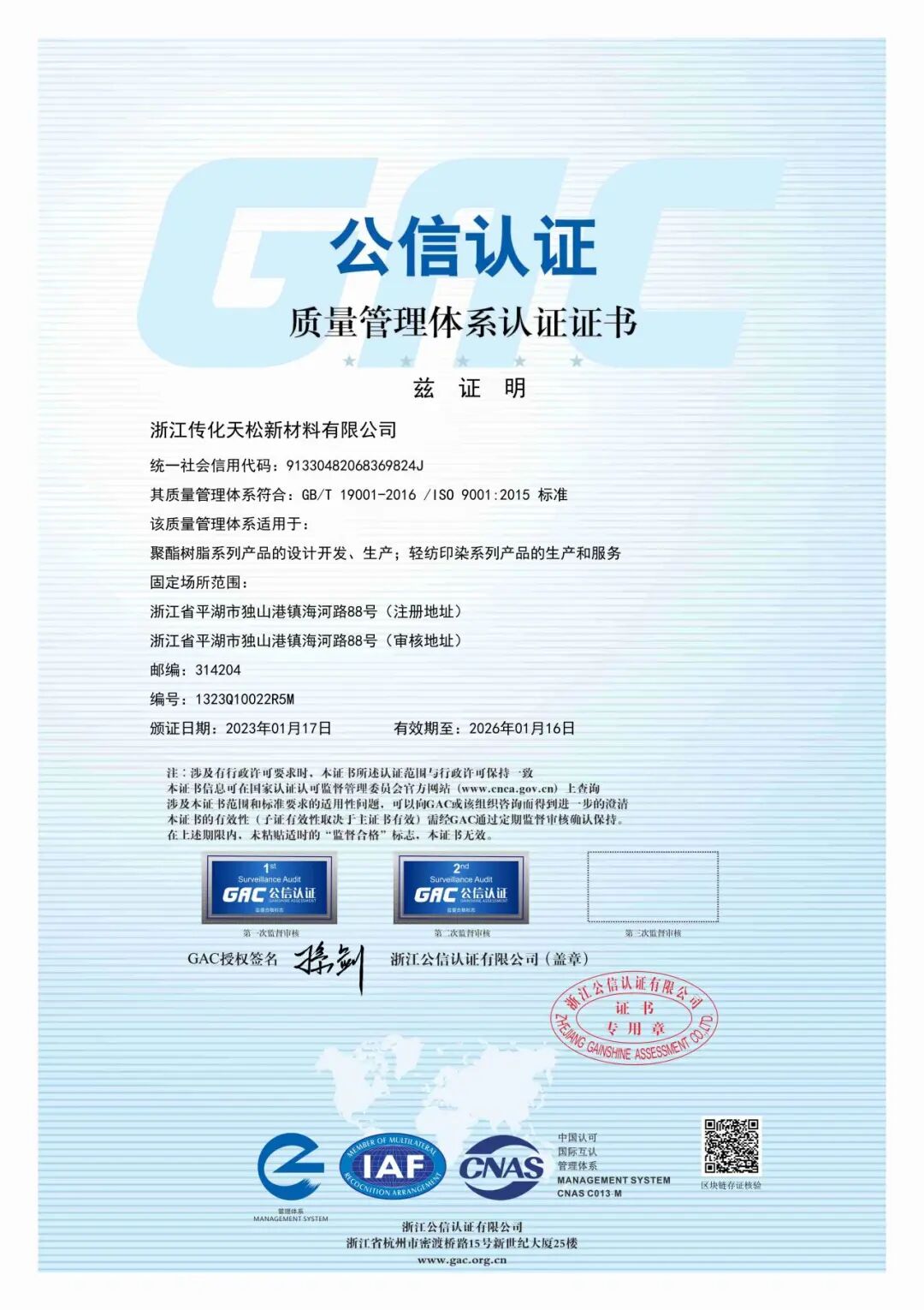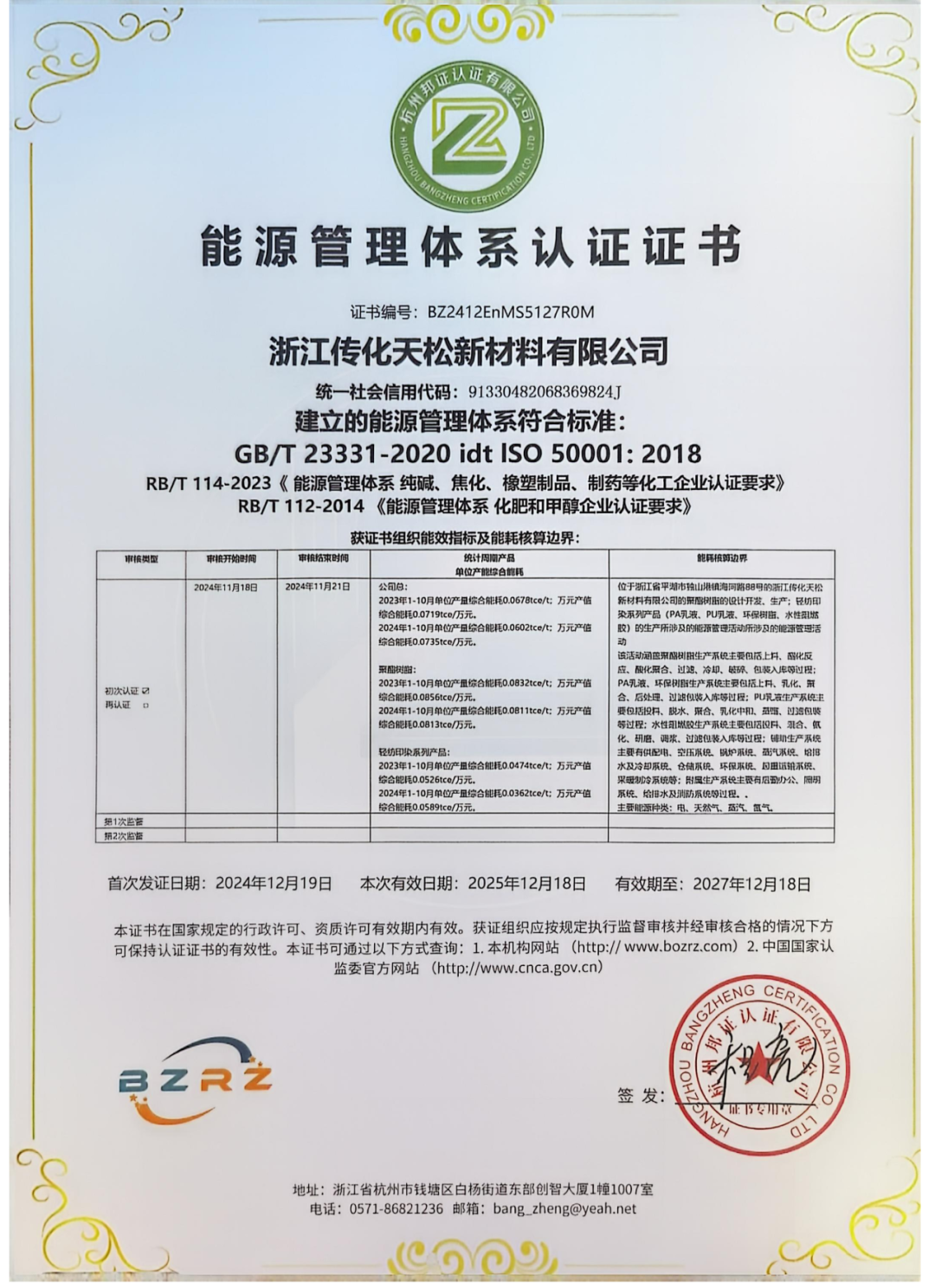绿色低碳转型是“十五五”重要任务,面对2030年碳排放达峰目标,传化天松坚持绿色制造、低碳发展。在生产端,通过工艺优化、节能改造与能源结构调整,显著提升能源利用效率,降低单位产品碳足迹;在产品端,持续开发低能耗、高环保特性的树脂新品,助力家电、建材、工业装备等领域绿色升级。企业已通过ISO9001、ISO14001、ISO5001等认证,确保产品低碳、可追溯。