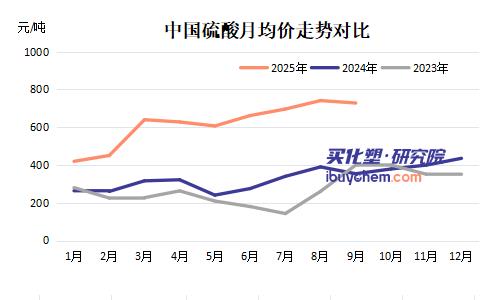 2025年中国硫酸出口量与价格齐飞,前八个月出口总量突破305万吨,同比增长103.53%,同时硫酸价格高歌猛进,价格站上近三年高........